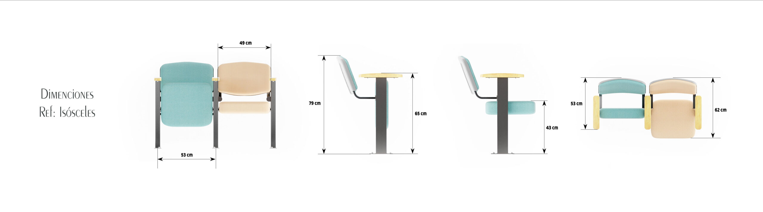 • Ancho entre ejes: 53 cm fondo asiento en servicio